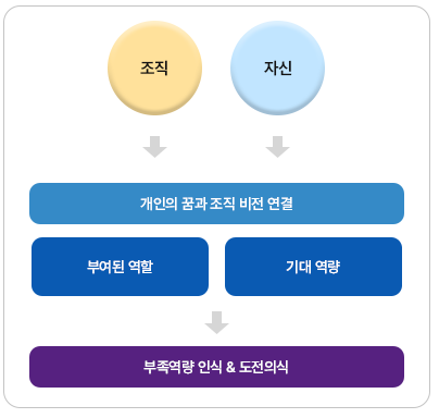 - 조직에 대한 이해를 바탕으로 조직의 일원으로서 갖춰야 할 신입사원의 역할 및 자세를 학습한다.
