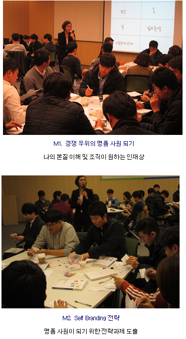 A그룹 신규입사자 셀프브랜딩 과정 페이지 정보 조회 4,815회 작성일 15-11-19 11:19 목록 본문 이전글A그룹 신입사원_조기전력화와 업무성향진단 과정 15.11.19 다음글A그룹 경력 신규입사자_경영 회계 시뮬레이션 과정 15.11.18