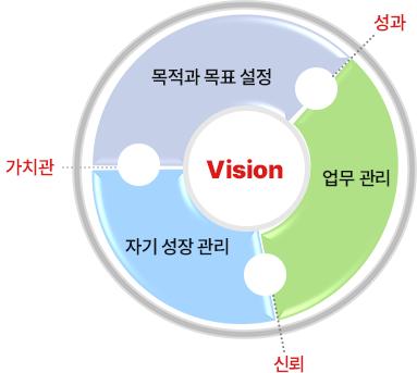• 인생과 업무의 통제권 확보하기 : 내 인생의 주도권 찾기 • 우리 조직이 가진 영향력의 인식과 신뢰와의 관계 • 성공적인 비전 설계를 위한 나의 삶과 회사의 핵심가치 도출 • 미래지향적인 삶에 대한 이해 • 나의 삶과 업무가 가진 영향력 이해 • 상호 신뢰하는 조직문화를 위한 성과지향적 의사결정과 소통의 조건 |