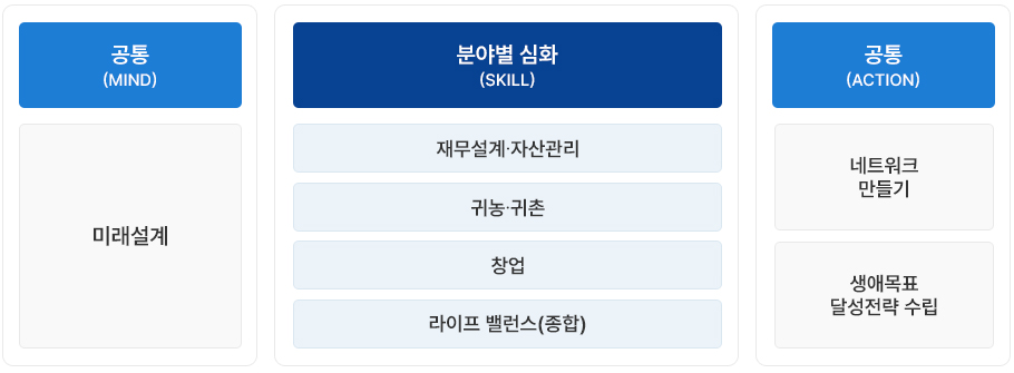 퇴직 후의 불확실한 미래에 대한 막연한 불안과 두려움 해소할 수 있고, 다양한 목표직업 분야별 세분화된 내용을 이해할 수 있습니다.