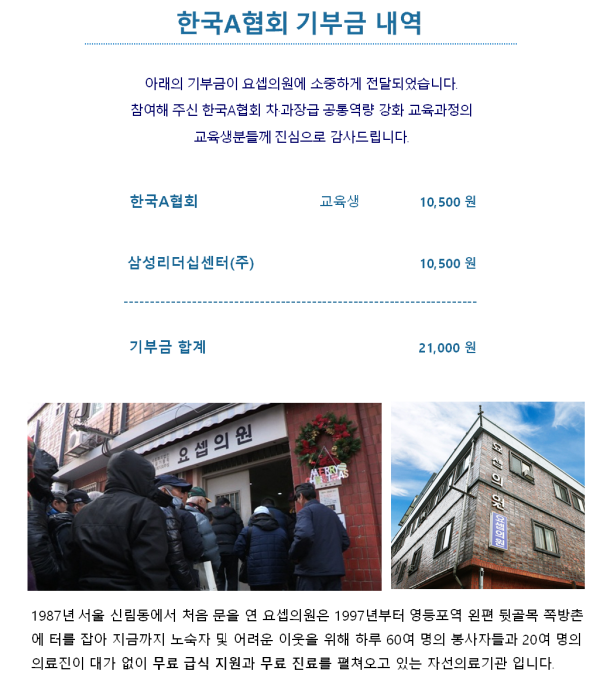 한국A협회 차·과장급 공통역량 강화 교육과정 기부금 내역