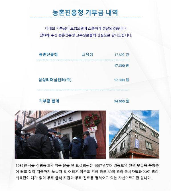 농촌진흥청 업무간소화 과정 기부금 내역 페이지 정보 조회 5,742회 작성일 04-19 15:28 목록 본문 . 이전글한국M공단 사내강사 양성교육 기부금 내역 05.30 다음글한국T공사 대리 승진자 교육 기부금 내역 04.19