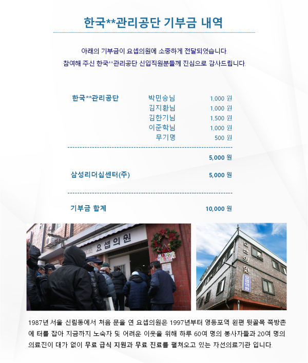 한국M공단 신입직원 교육 기부금 내역