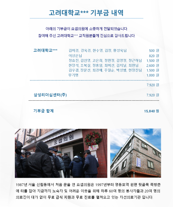 고려대학교의료원 교직원 교육 7次 기부금 내역 페이지 정보 조회 5,694회 작성일 07-02 00:55 목록 본문 . 이전글한국V공단 리마인드 교육 기부금 내역 07.02 다음글한국**공사 예비관리자 교육 기부금 내역 06.28