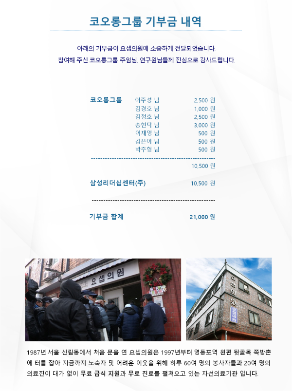 코오롱그룹 신입향상교육 2次 기부금 내역 페이지 정보 조회 5,947회 작성일 11-24 01:08 목록 본문 . 이전글김원규 대표 기부금 내역 11.24 다음글코오롱그룹 신입향상교육 1次 기부금 내역 11.22