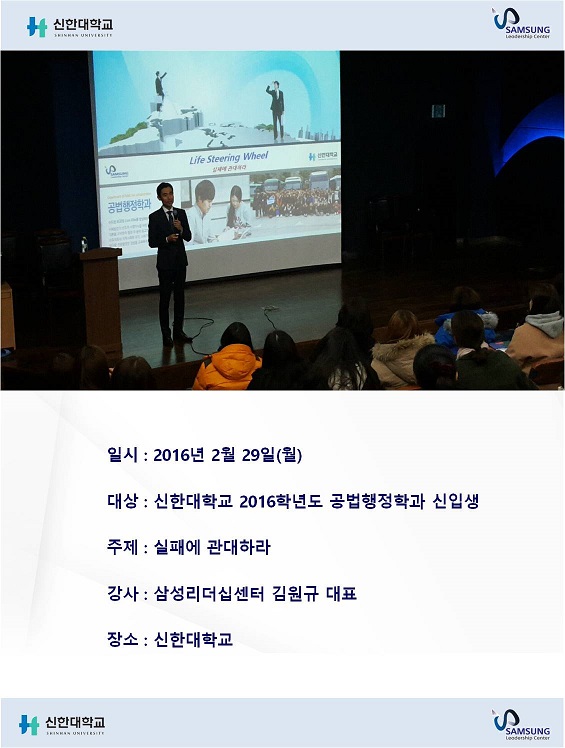 [나눔강의] 신한대학교 공법행정학과 신입생 워크샵 초빙 특강 / 김원규 대표 / 신한대학교 강당