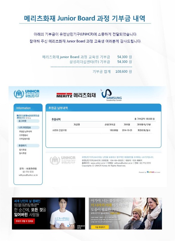 메리츠화재 Junior Board 교육 Work-out Town-meeting 과정 기부금 내역